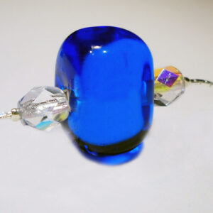 La collana è formata da quattro cubi di vetro, due di color blu trasparente e due con una base di color bianco trasparente su cui sono state disegnate striature color blu trasparente. La collana è unita da una perla di vetro color blu trasparente a forma di cuore, il tutto impreziosito da mezzi cristalli trasparenti.